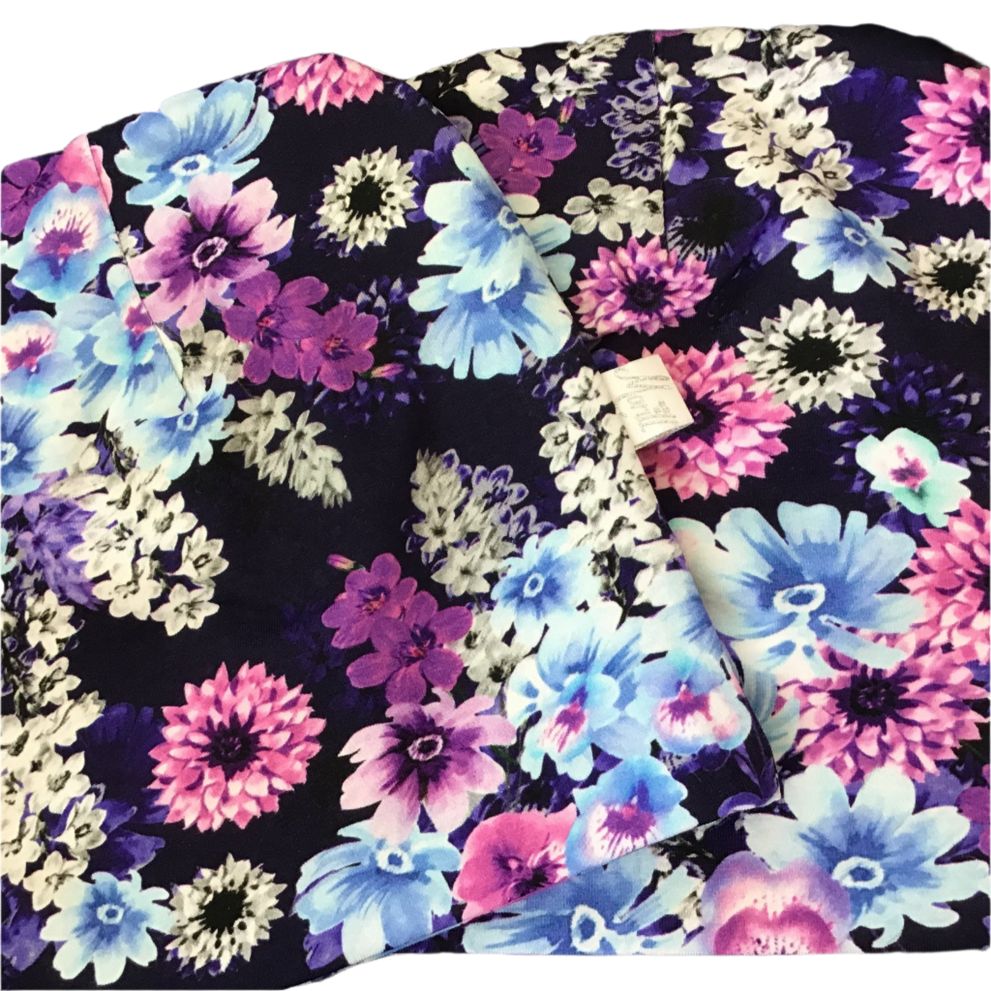 "Elegant lue med lilla og blå blomstermotiv i myk bomull. Perfekt for hverdagsbruk på kjølige dager. Sikre deg denne unike luen nå!" Dobbel Bomullslue – Perfekt Passform for Allslags Bruk