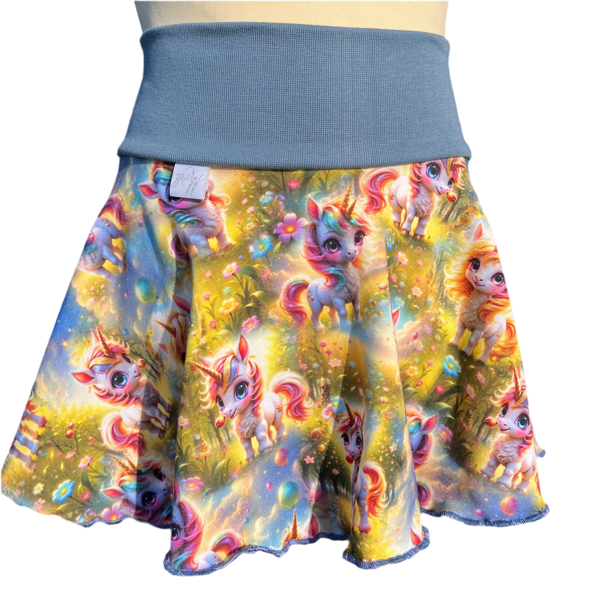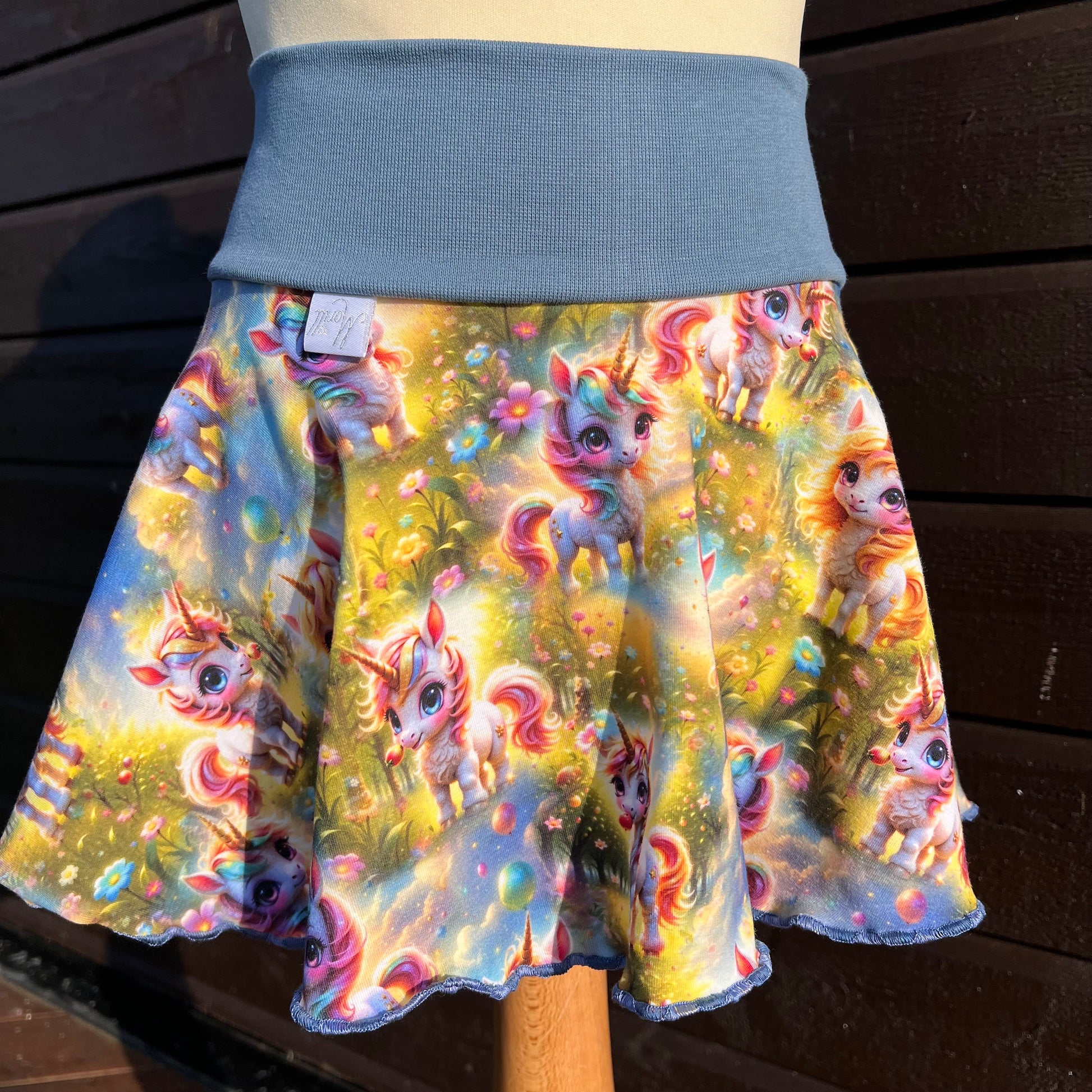 "Nydelig fullsnurreskjørt med vårlige enhjørninger. Perfekt for til skolestart og andre begivenheter. Gjør antrekket komplett – kjøp i dag!"Skjørt