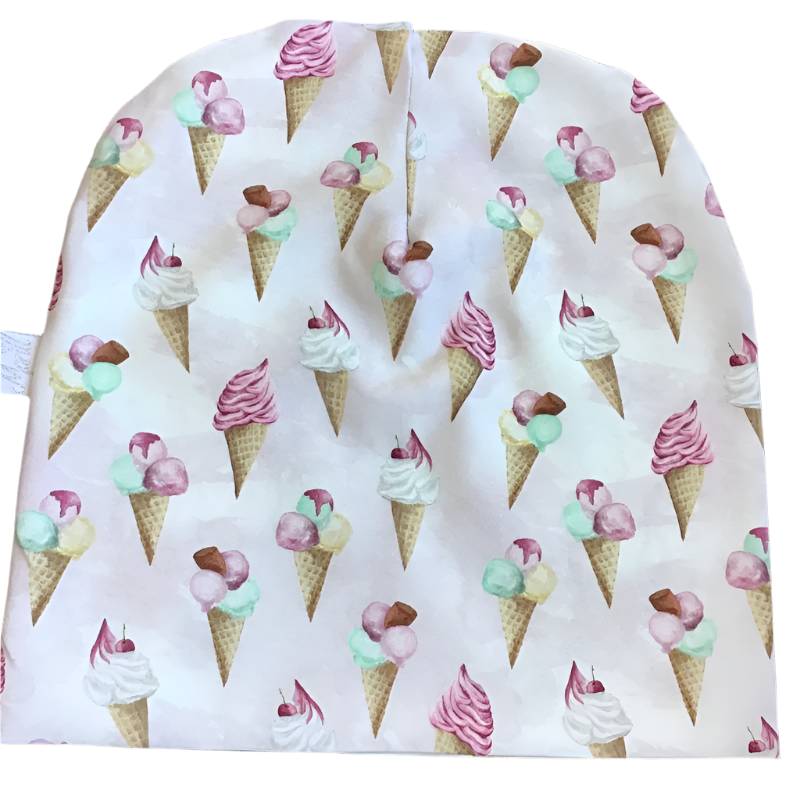 "Søt lue med rosa iskremmotiv i dobbel bomull. Perfekt for små som elsker søte detaljer. Gjør det til en favoritt for lek og moro – bestill nå!" Dobbel Bomullslue – Perfekt Passform for Allslags Bruk