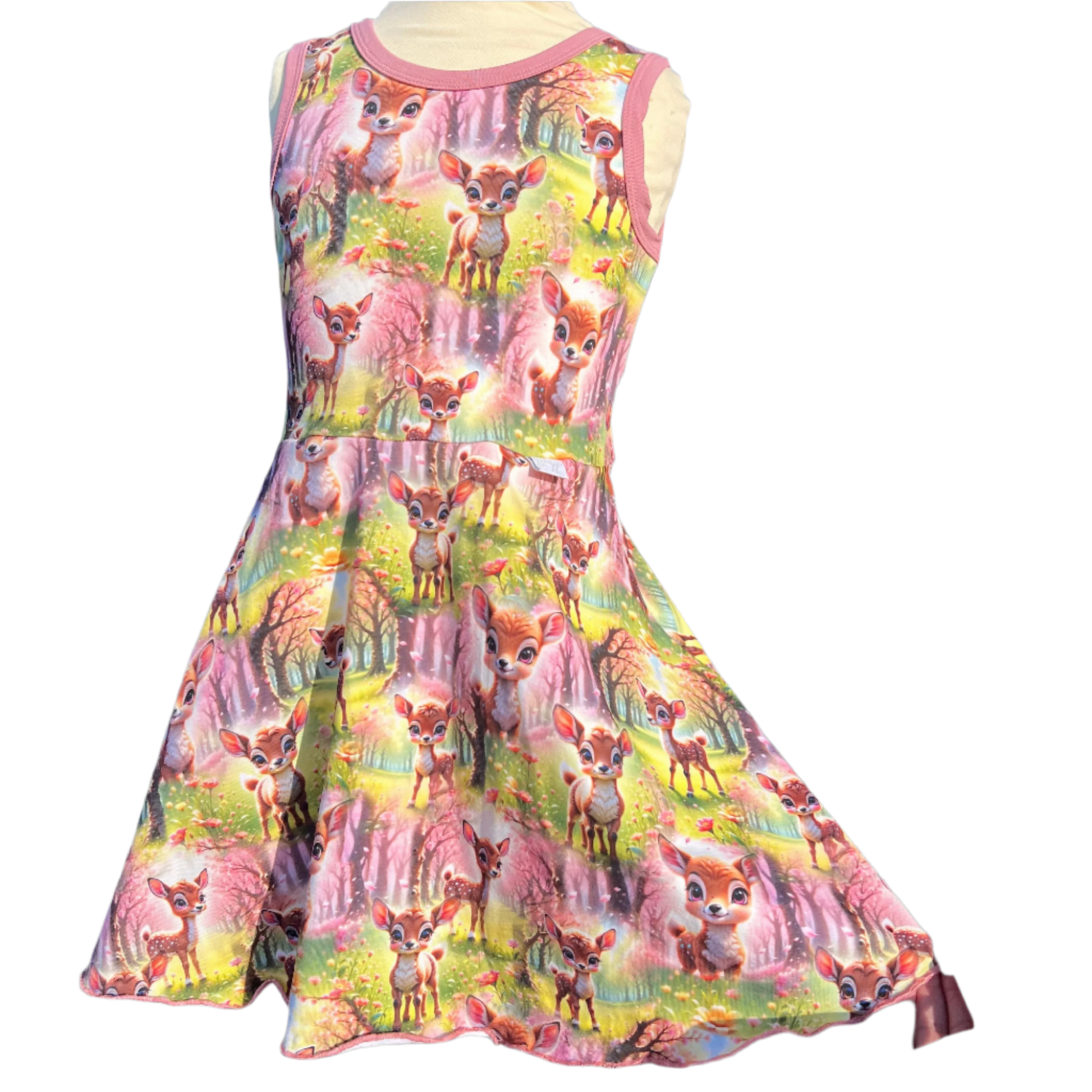 Kjole med vårlige bambier, laget for ekte prinsesser. Perfekt for hverdagsbruk med et unikt preg. Bestill i dag!" – Allsidig Eleganse Hele Året