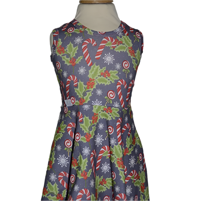 "Festlig kjole med candycane-mønster, perfekt for høytiden. Komfortabel og leken for små som elsker julens magi. Kjøp nå!" – Allsidig Eleganse Hele Året