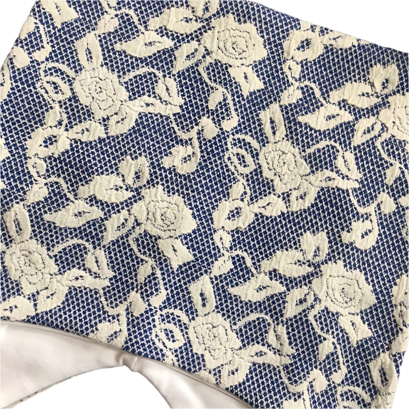 "Søt knyttelue med blå blondemønster og mykt for. Komfortabel og varm for små hoder. Perfekt for kalde dager – bestill nå!"Knytteluer med Bomullsfôr – Myk og Komfortabel Beskyttelse