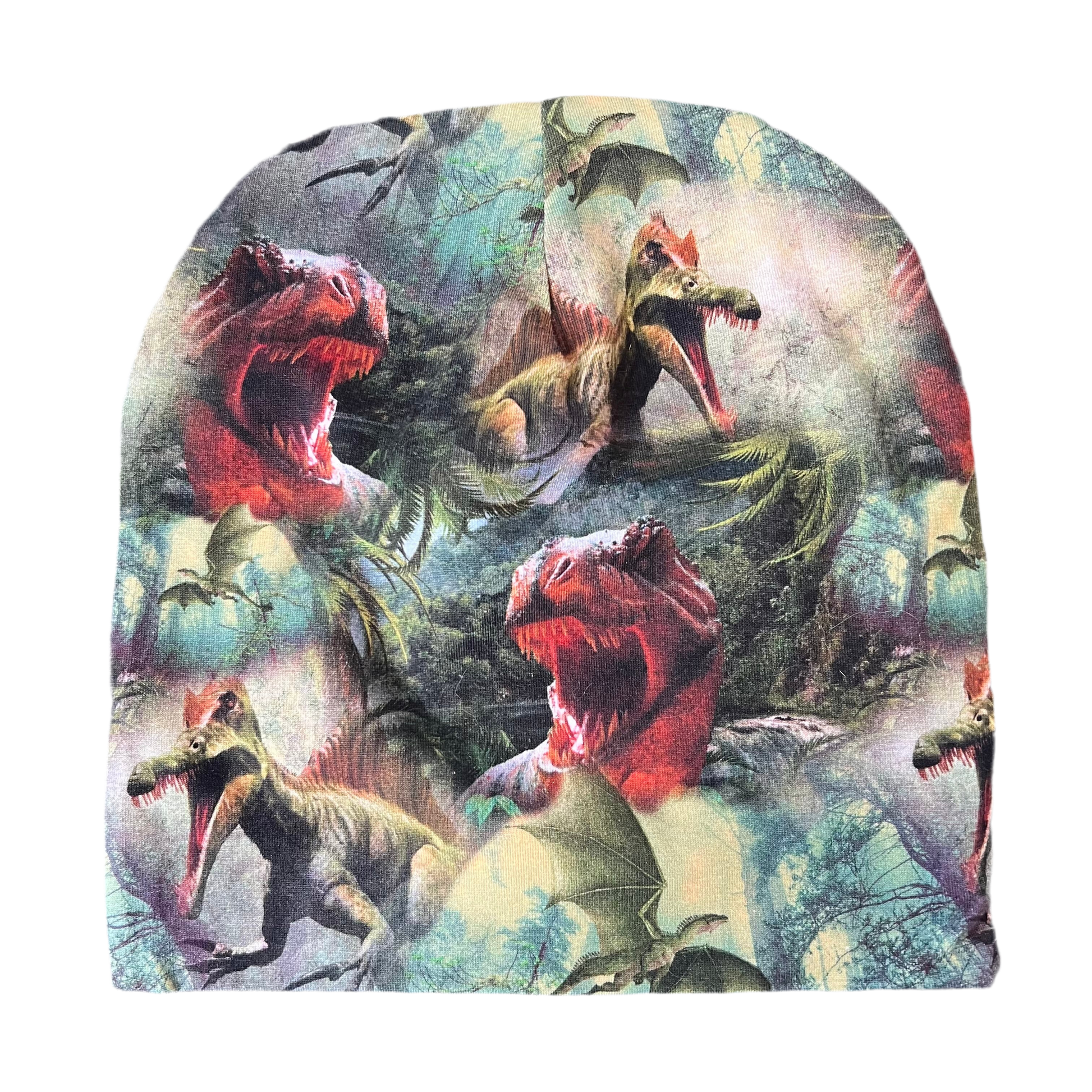 "Lue med dinosaurer i skummelt design. Myk bomull gir perfekt passform for lek og aktivitet. Perfekt for små eventyrere – kjøp i dag!" Dobbel Bomullslue – Perfekt Passform for Allslags Bruk