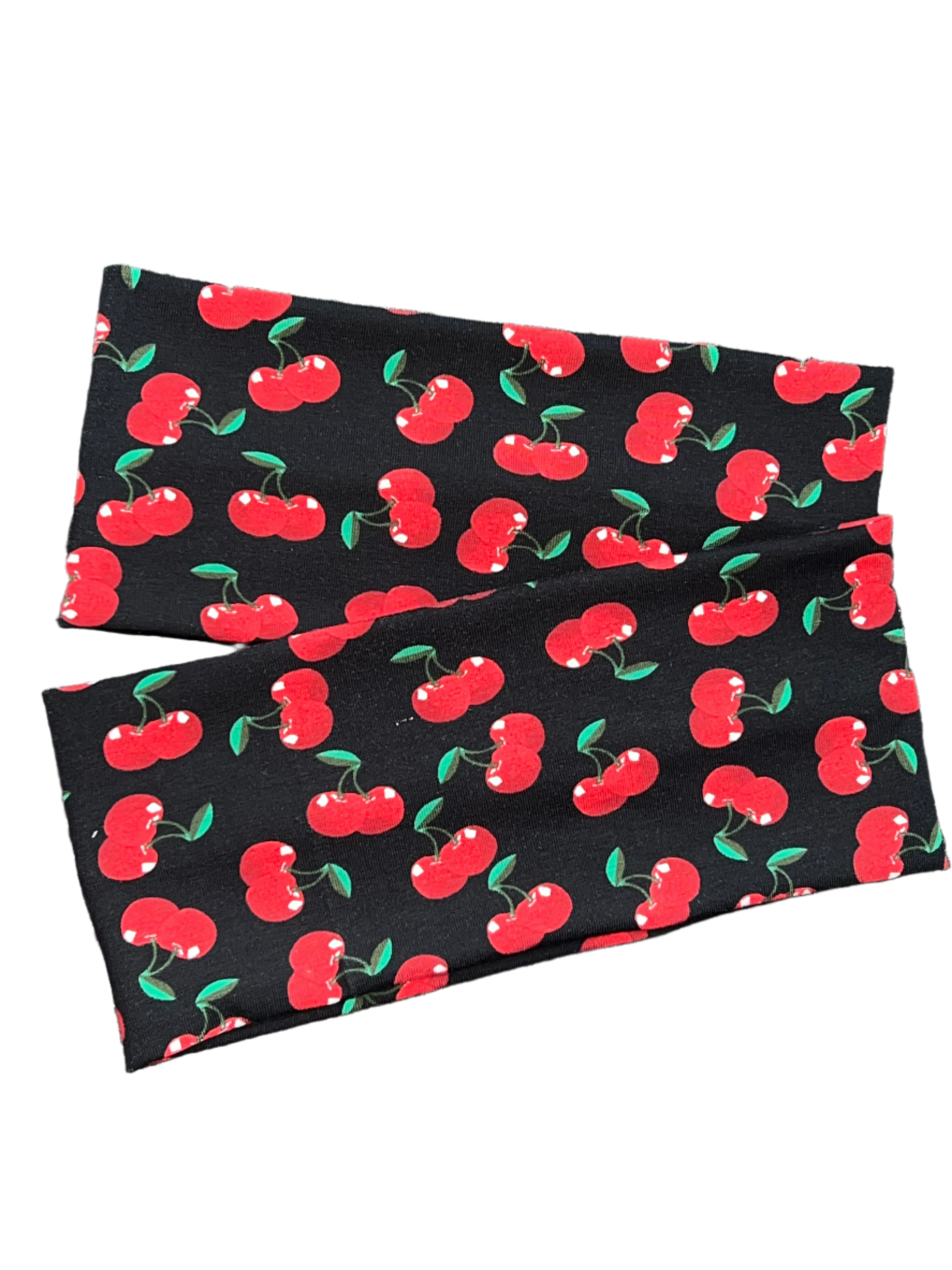 "Elegant pannebånd med kirsebærmotiv i myk bomull. Friskt og fargerikt design, perfekt for vår og sommer. Passer barn og liten voksen. Kjøp nå!"Komfort, Stil og Beskyttelse for Kjølige Dager
