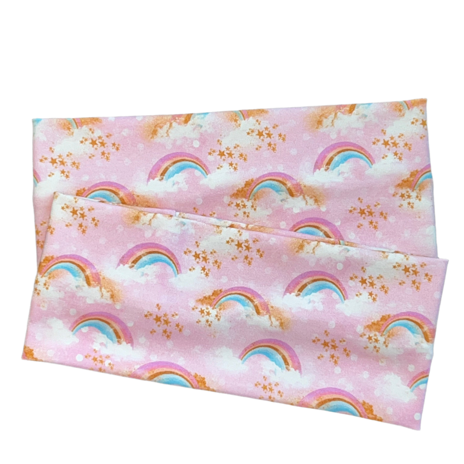 "Fargerikt pannebånd med rosa regnbuemotiv i myk bomull. Komfortabelt og stilfullt, perfekt for små optimister. Gjør det til ditt valg!"Komfort, Stil og Beskyttelse for Kjølige Dager