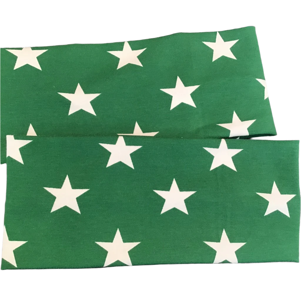 "Skinnende pannebånd med grønne stjerner i myk bomull. Elastisk passform for komfort hele dagen. Passer barn og liten voksen. Bestill nå!"Komfort, Stil og Beskyttelse for Kjølige Dager