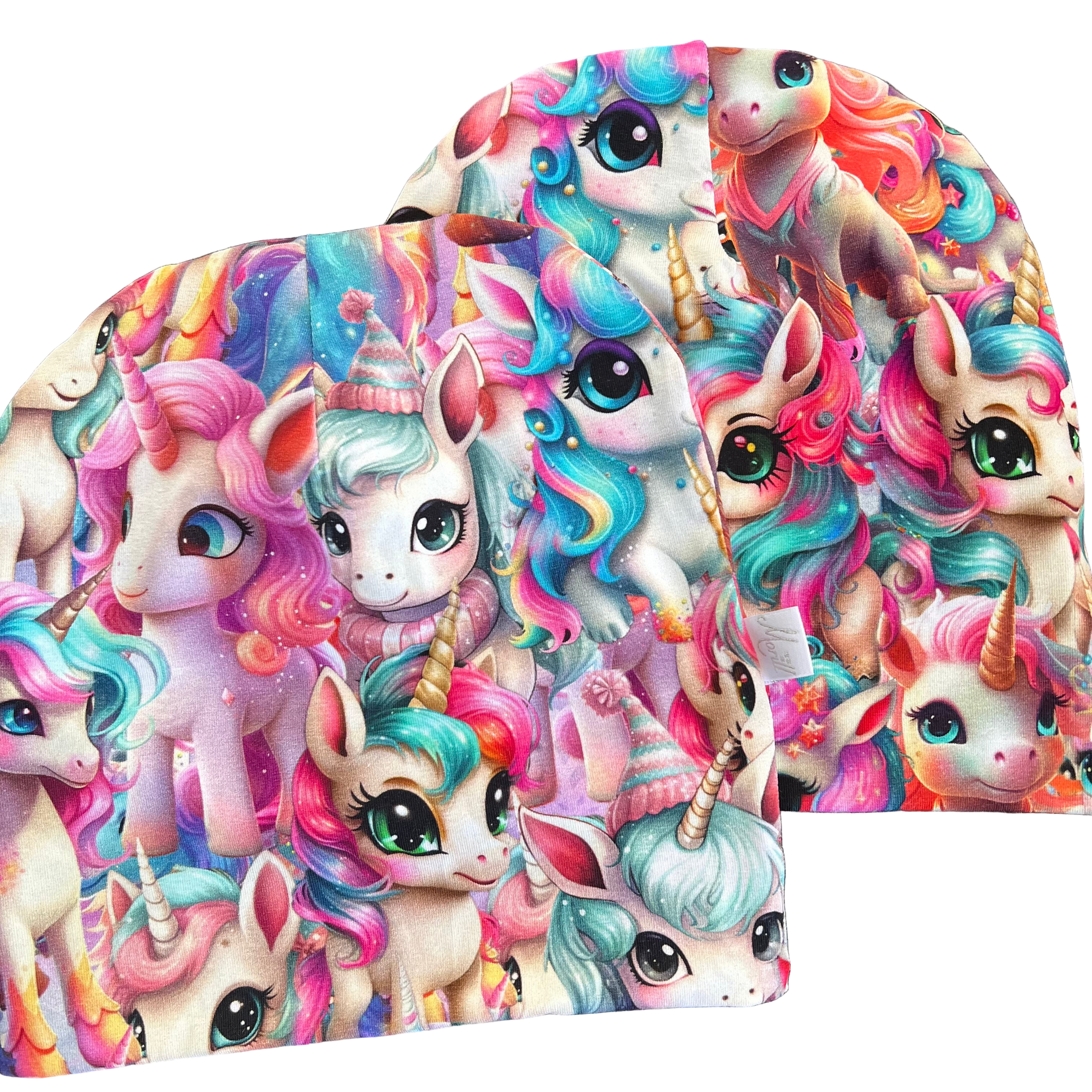 "Magisk lue med Nydelige flerfargede Enhjørninger, laget i dobbel bomull. Perfekt for små som elsker spennende design og komfort. Bestill nå!" Dobbel Bomullslue – Perfekt Passform for Allslags Bruk